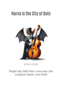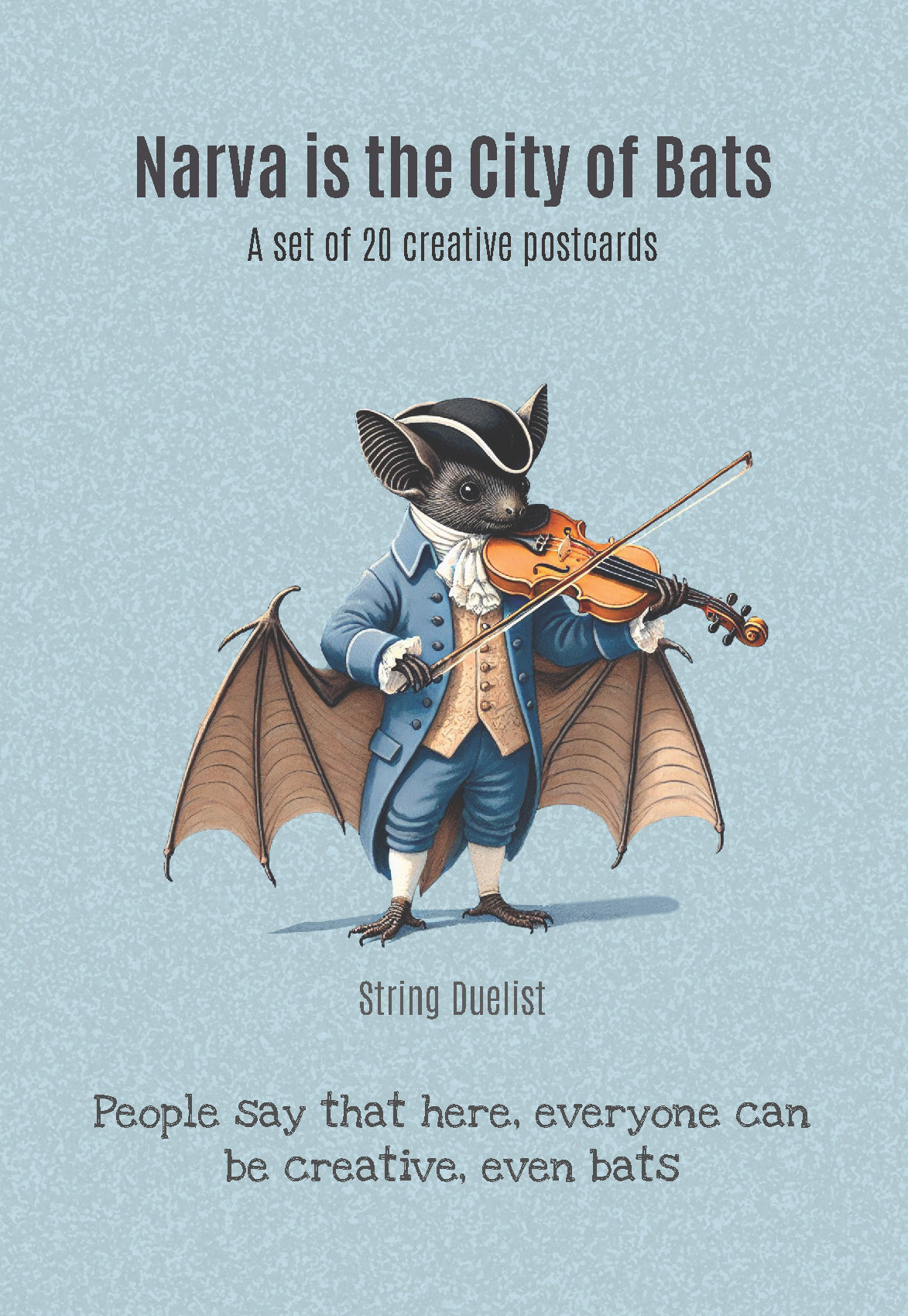 Открытки «Нарва — город летучих мышей» — это коллекция из 20 уникальных и креативных открыток, которые передают атмосферу города Нарва. На каждой открытке изображены летучие мыши в самых неожиданных и увлекательных образах: от шахматиста до саксофониста или дирижёра.